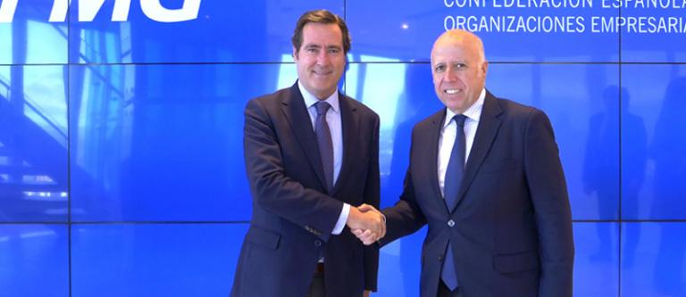 El presidente de la Confederación Española de Organizaciones Empresariales (CEOE), Antonio Garamendi y el de KPMG en España, Hilario Albarracín, han firmado un nuevo acuerdo que da continuidad a la colaboración en la publicación del informe anual Perspectivas España, que recoge las expectativas, retos y oportunidades que prevé el tejido empresarial español para el próximo año.